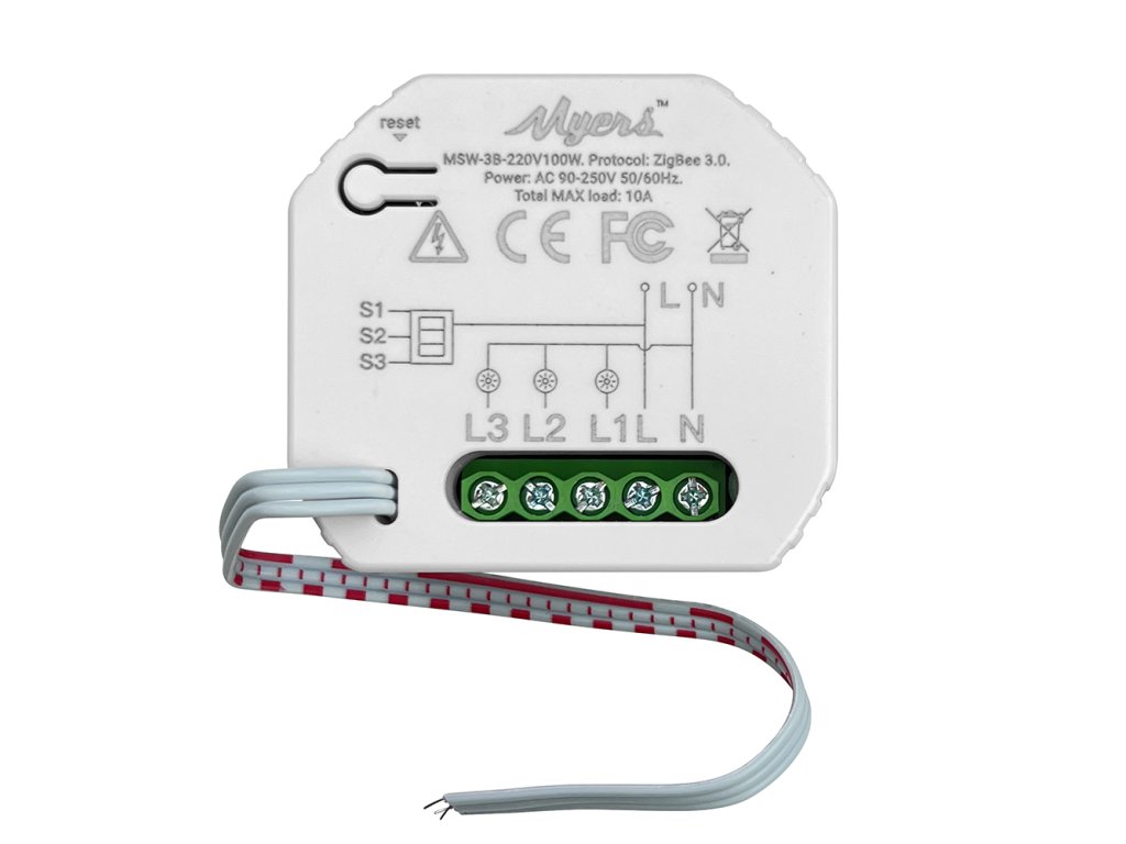 Der Smart Light Switch MSW-3B-220V/100W ZB lässt sich dank ZigBee 3.0-Technologie nahtlos in Ihr Smart Home integrieren. Dieser Schalter steuert bis zu drei 100-W-Leuchten, unterstützt eine maximale Last von 10 A und ist mit der Partizan-App für die mobile Steuerung kompatibel.