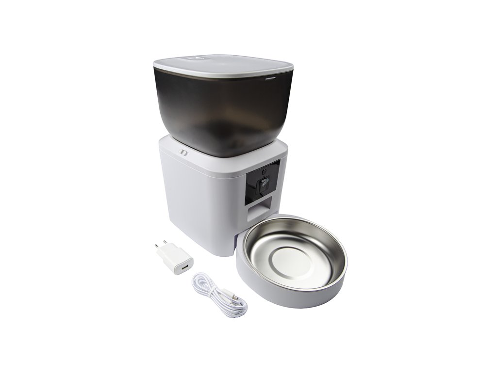 Smart Pet Feeder PFD-C4 Camera Wi-Fi 4L White Myers The Smart WiFi Pet Feeder with Camera is a modern solution for busy pet owners. With seamless WiFi connectivity (2.4GHz), this automatic pet feeder allows you to schedule meals, control portions, and even monitor your pet through the built-in camera. Whether you’re at home or away, you can ensure your pet is fed on time and even talk to them through the two-way audio feature. The large capacity storage tank and fresh food storage system guarantee that your pet’s meals stay fresh and accessible at all times. Features: Smart App Control for Ultimate Convenience - Easily control feeding times, portions, and schedules through the Tuyasmart app from your smartphone. - Remotely feed your pet anytime, anywhere, ensuring they’re always fed on time, even when you’re away. - Receive automatic push notifications if the food is stuck or if the battery is low, ensuring no disruptions in feeding. Automatic Feeding & Portion Control - Set automatic feeding schedules and control portion sizes directly through the app. - The built-in reversal mechanism prevents food from getting stuck and ensures smooth kibble flow every time. - Keeps your pet on a healthy feeding schedule, even when you’re not around. - Designed to work with both dry and wet food, providing flexibility for your pet’s diet. Remote Monitoring with Built-in Camera - The 480P camera allows you to keep an eye on your pet’s behavior and meal time. - With remote monitoring, you can see how much food your pet has eaten and make sure they are comfortable while eating. - Peace of mind with the ability to check on your pet, especially when you’re away from home or the office. Large Capacity Storage - A 4L storage tank is perfect for multiple pets or for owners who travel frequently. - Reduce the frequency of refills while ensuring there’s always enough food available for your pets. - The feeder is designed for dry food, keeping it fresh for longer, and the built-in desiccant box ensures optimal food storage. Keep Food Fresh with Built-In Desiccant Box - The integrated desiccant box helps to keep pet food dry and fresh by preventing moisture buildup. - Includes a desiccant bag that helps maintain optimal food storage conditions. - Keeps food healthy and free from contaminants, ensuring your pet gets the freshest meals. Ideal for pet owners who want to maintain high-quality food storage without worrying about spoilage. Dual Power Supply for Uninterrupted Feeding - The feeder supports both adapter charging and 4 AA batteries (not included), providing flexibility and ensuring it keeps running smoothly. - Whether you have access to a power outlet or are in an area with frequent power outages, your pet will always be fed. - The dual power supply system ensures your pet’s feeding schedule is never interrupted. Easy Installation and Use - The feeder is designed for simple setup: just load the desiccant, fill with food, plug in the feeder, and connect to the app. - App-based portion control allows you to adjust food portions to fit your pet’s specific needs and preferences. - The user-friendly setup ensures that feeding your pet is as easy as pressing a button. Specifications: Model: with Camera Color: White Capacity: 4L Meals Setting: 1-10 Meals Portion Setting: 1-20 Portions APP Control: Yes WiFi: 2.4Ghz Camera: 480P Night Vision: No Alarm: Food stuck, low battery Voice Recording: Yes LCD Display: No Bowl: One stainless steel bowl Dual Power Supply: USB cable + Adapter, AA battery Package includes: 1x Smart Pet Feeder PFD-C4 Camera 4L White Myers