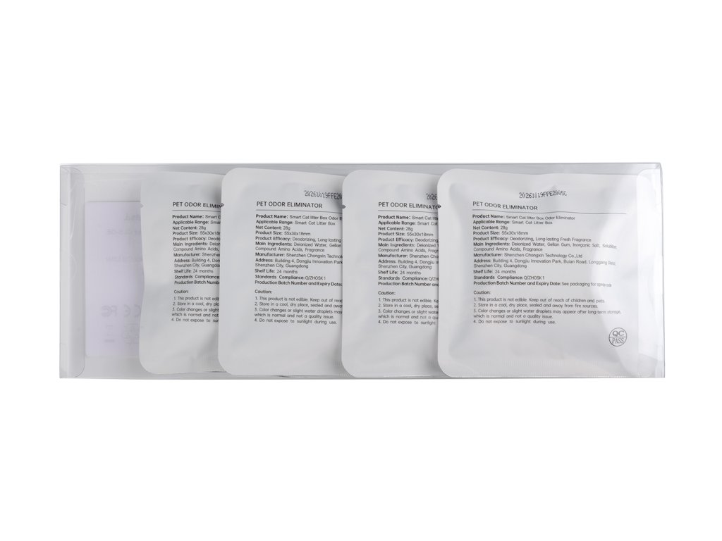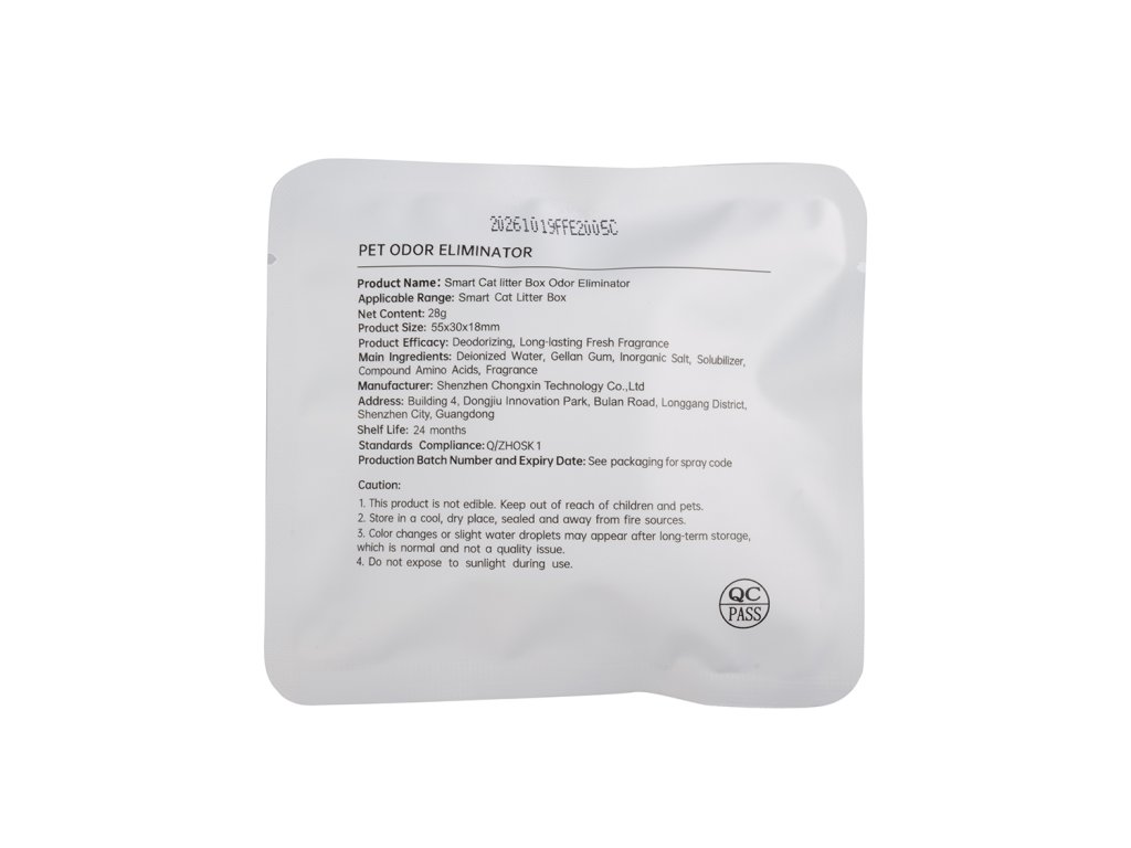Odstraňovač pachů z domácích mazlíčků CLB-OE Myers Speciálně vyvinutý deodorant určený pro kočičí toaletu Myers. Tento kompaktní doplněk neutralizuje amoniak a nepříjemné pachy z kočičí toalety pomocí směsi aktivního uhlí a neutralizačních látek bezpečných pro domácí mazlíčky. Je navržen tak, aby se snadno integroval do kočičí toalety Myers, a pomáhá udržovat čerstvější a hygieničtější prostředí jak pro domácí mazlíčky, tak pro jejich majitele. Specifikace: Název produktu: Odstraňovač pachů Smart Cat Litter Box Rozsah použití: Smart Cat Litter Box Čistý obsah: 28 g Rozměry produktu: 55 x 30 x 18 mm Účinnost produktu: Deodorizace, dlouhotrvající svěží vůně Balení obsahuje: 4 ks/sáček