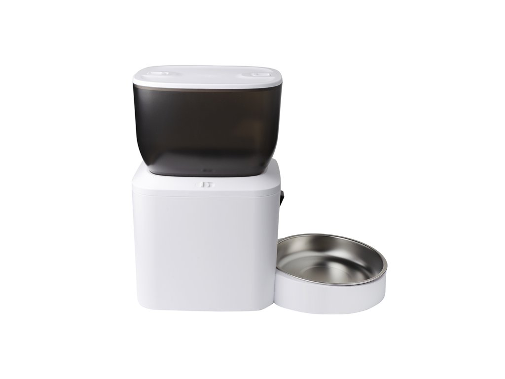 Zawartość opakowania: 1x inteligentny podajnik karmy dla zwierząt Myers PFD-CW1 z kamerą Wi-Fi 4L, kolor biały 1x zasilacz 1x plastikowa miska 1x miska ze stali nierdzewnej 1x kabel typu C
