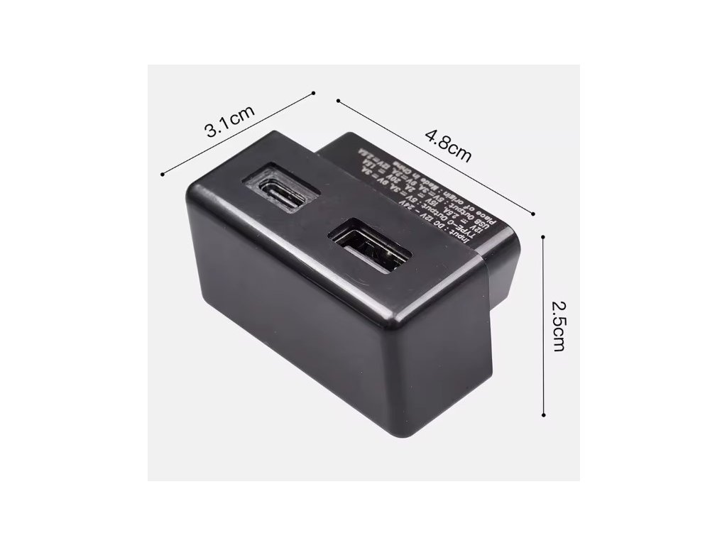 Adapter ładowarki OBD do Tesla Model 3/Y – podwójny port USB i wyjście typu C Ulepsz swoją konfigurację ładowania Tesli dzięki temu kompaktowemu adapterowi ładowarki OBD, kompatybilnemu z Modelem 3 i Modelem Y. Zaprojektowany do podłączenia bezpośrednio do portu OBD pojazdu, zapewnia płynny dostęp do zasilania dzięki wyjściom USB-A i USB-C. Idealny do zasilania kamer samochodowych, urządzeń mobilnych lub akcesoriów wewnętrznych, ten adapter typu plug-and-play obsługuje szybkie ładowanie i zapewnia uporządkowane zarządzanie kablami. Jego niskoprofilowa konstrukcja dyskretnie mieści się pod deską rozdzielczą, zachowując elegancki wygląd wnętrza. Specyfikacje: Kompatybilność: Tesla Model 3, Model Y Wejście: DC 12 V–24 V Wyjście: USB-A: 5 V/2,4 A / USB-C: 5 V/3 A, 9 V/2 A, 12 V/2,5 A Porty: 1 x USB-A, 1 x USB-C Materiał: tworzywo ABS Kolor: czarny Wymiary: 4,8 × 3,1 × 2,5 cm Zestaw zawiera: 1 x adapter ładowarki OBD do Tesla Model 3/Y – podwójny port USB i wyjście typu C Nie jest powiązany z Tesla, Inc. Przedstawiony produkt nie jest oficjalnym produktem Tesla i służy wyłącznie do celów identyfikacyjnych.