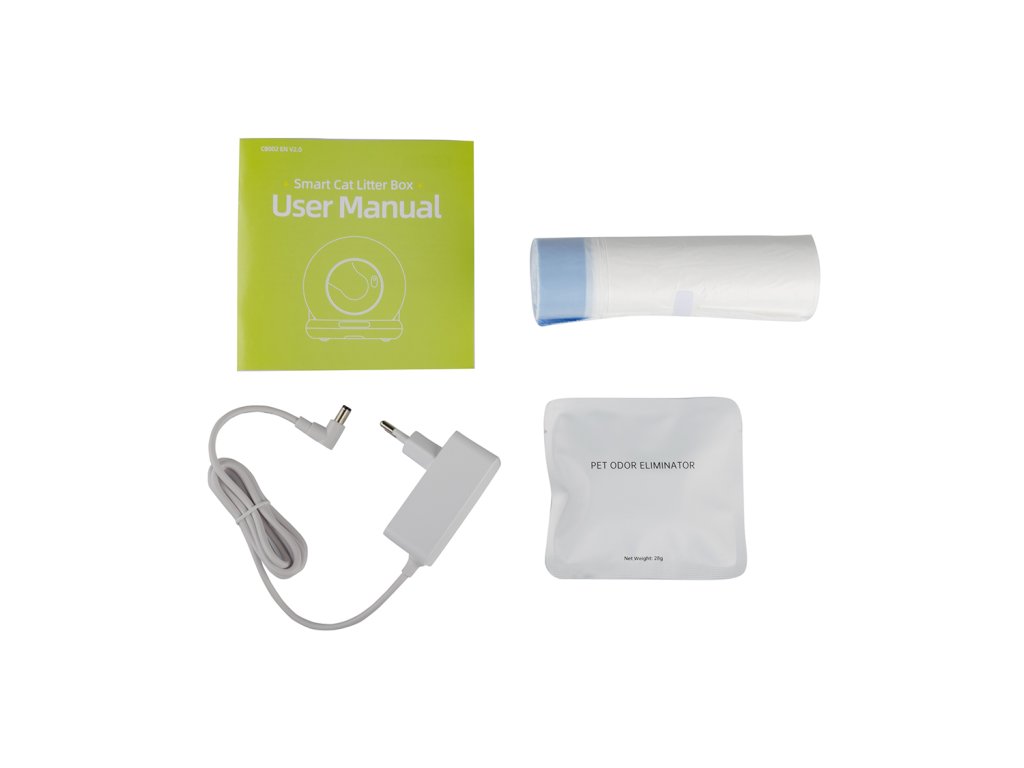 Pobierz arkusz danych Zawartość opakowania: 1x inteligentna kuweta dla kota CLB-C1 z kamerą Wi-Fi, kolor biały Myers 1x filtr dezodoryzujący 1x mata do kontroli piasku 1x worek na śmieci 15 sztuk / rolka 1x adapter